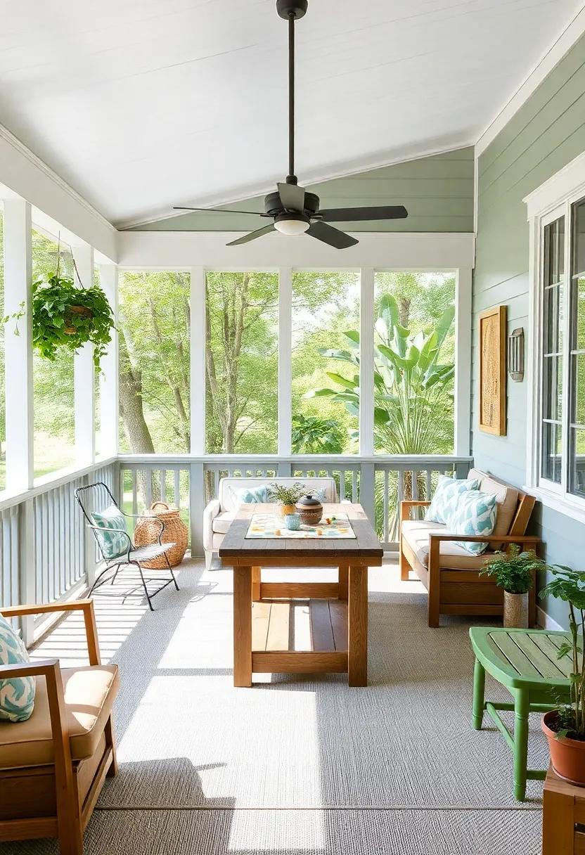transform a corner of your screened porch into a cozy retreat where kids can unwind after a day of adventure. Scatter colorful bean bags around a low table, inviting children to settle into their own little oasis. This space can serve as a perfect backdrop for them to engage in a variety of activities,from card games to drawing. Consider incorporating soft lighting or a few twinkling fairy lights overhead to stimulate a calming atmosphere, making it an ideal spot for relaxation and creativity.