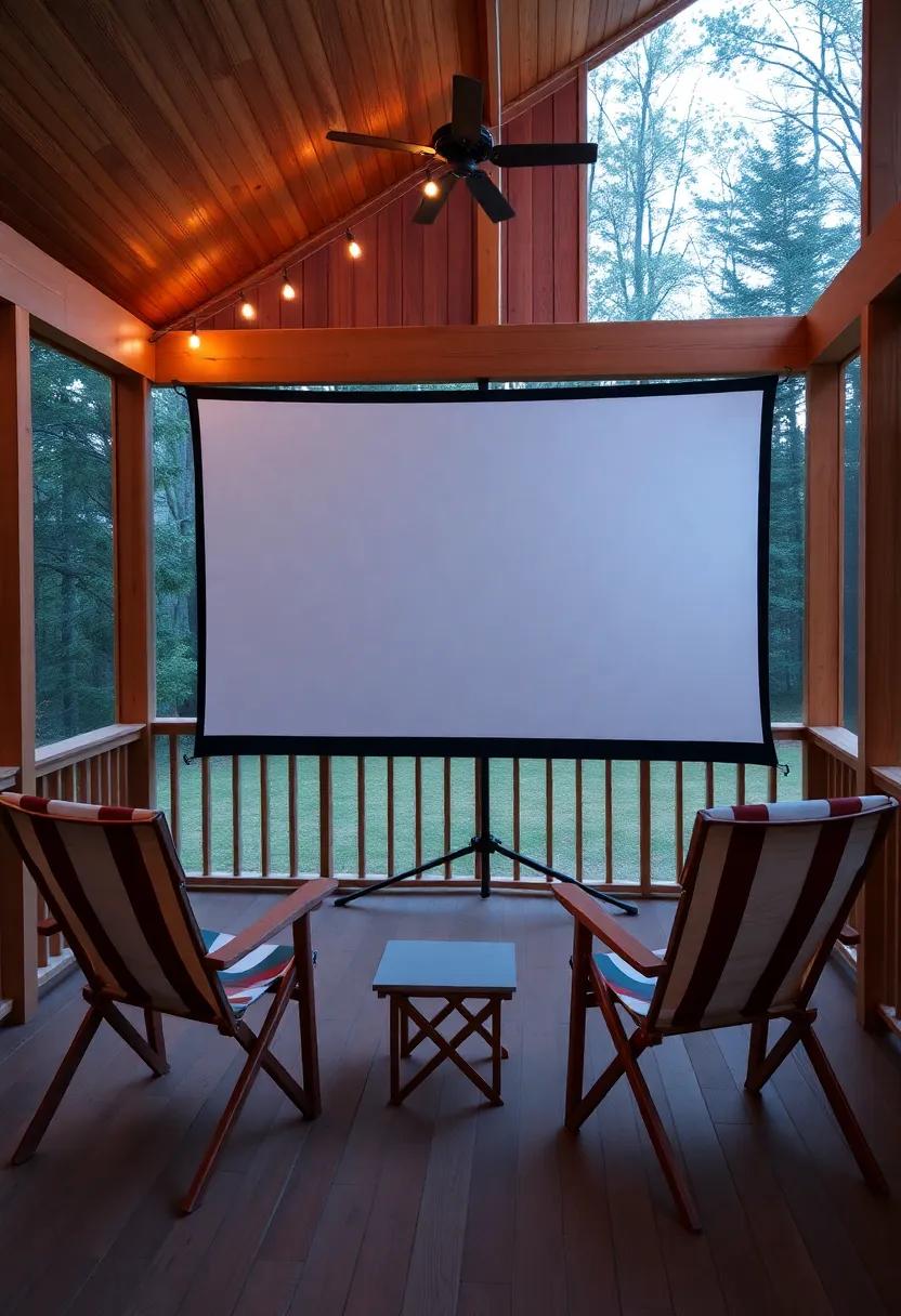 Cozy movie Cabin: Build a small, portable movie screen and camping chairs in a corner, turning the porch into a cozy cabin theater for family movie nights