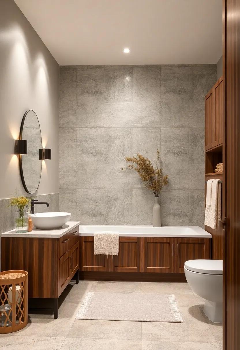 Another creative approach is to incorporate subway tiles in a unique layout, such as herringbone or chevron, to bring a contemporary twist to a classic design. Pair these with metallic accents—like brass or copper—to introduce a modern edge that complements the cabinet wood. Don’t hesitate to mix and match different patterns for a more dynamic feel; just maintain a cohesive color palette to tie everything together. When properly executed, this playful aspect of tile design can light up the entire space, making your bathroom not just functional, but truly beautiful.