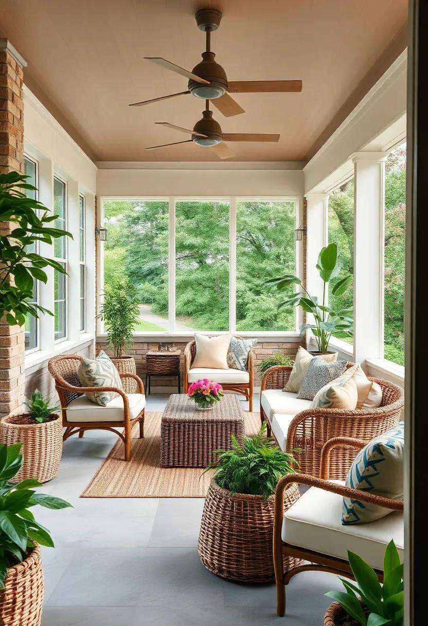 Besides hanging or placing plants in woven planters, consider incorporating potted plants strategically around your wicker seating area.Use larger pots for statement plants like fiddle leaf figs or palms, while smaller pots can showcase your favorite herbs or seasonal flowers. This approach not only enhances the aesthetics but also can create a subtle aroma that elevates the sensory experience of your porch. Here’s a quick list of ideal plants to choose from: