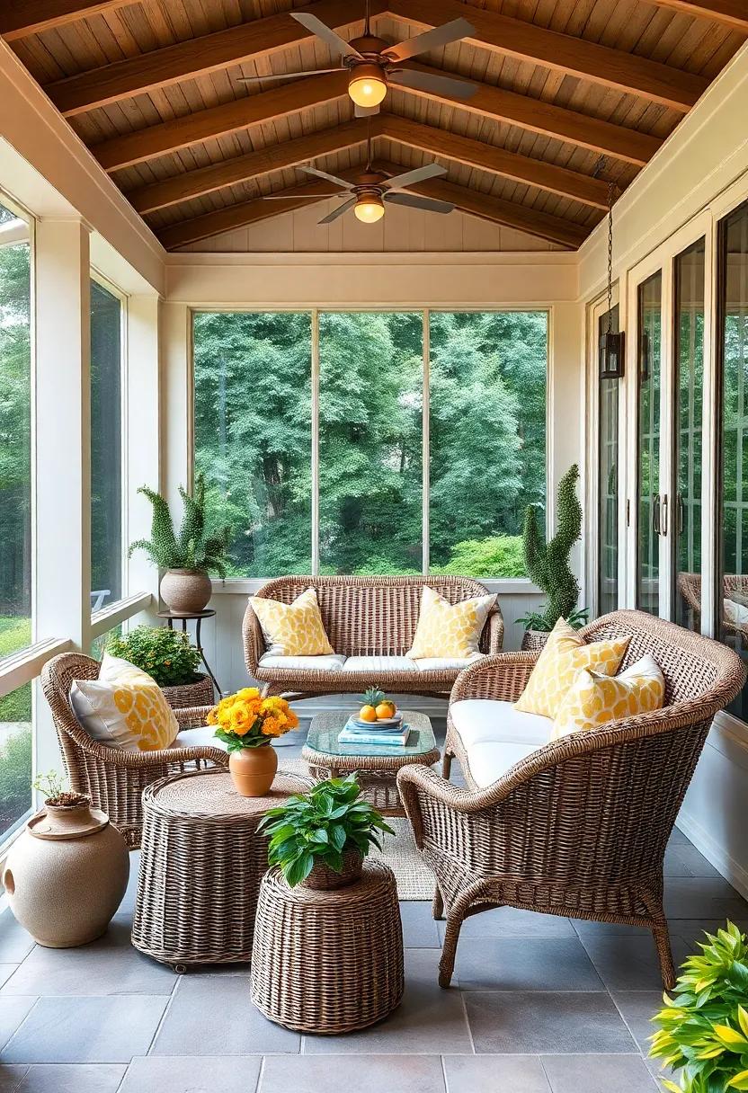 choosing wicker furniture in natural, earthy tones allows your screened porch to blend seamlessly with the surrounding outdoor landscape. Consider options like rich browns, soft beiges, and forest greens to create a calming atmosphere that invites relaxation. This not onyl enhances the aesthetic appeal but also provides a backdrop where the beauty of nature can shine. A harmonious palette, mimicking the hues found in tree bark, the earth, and various types of foliage, can transform your space into a cozy retreat.