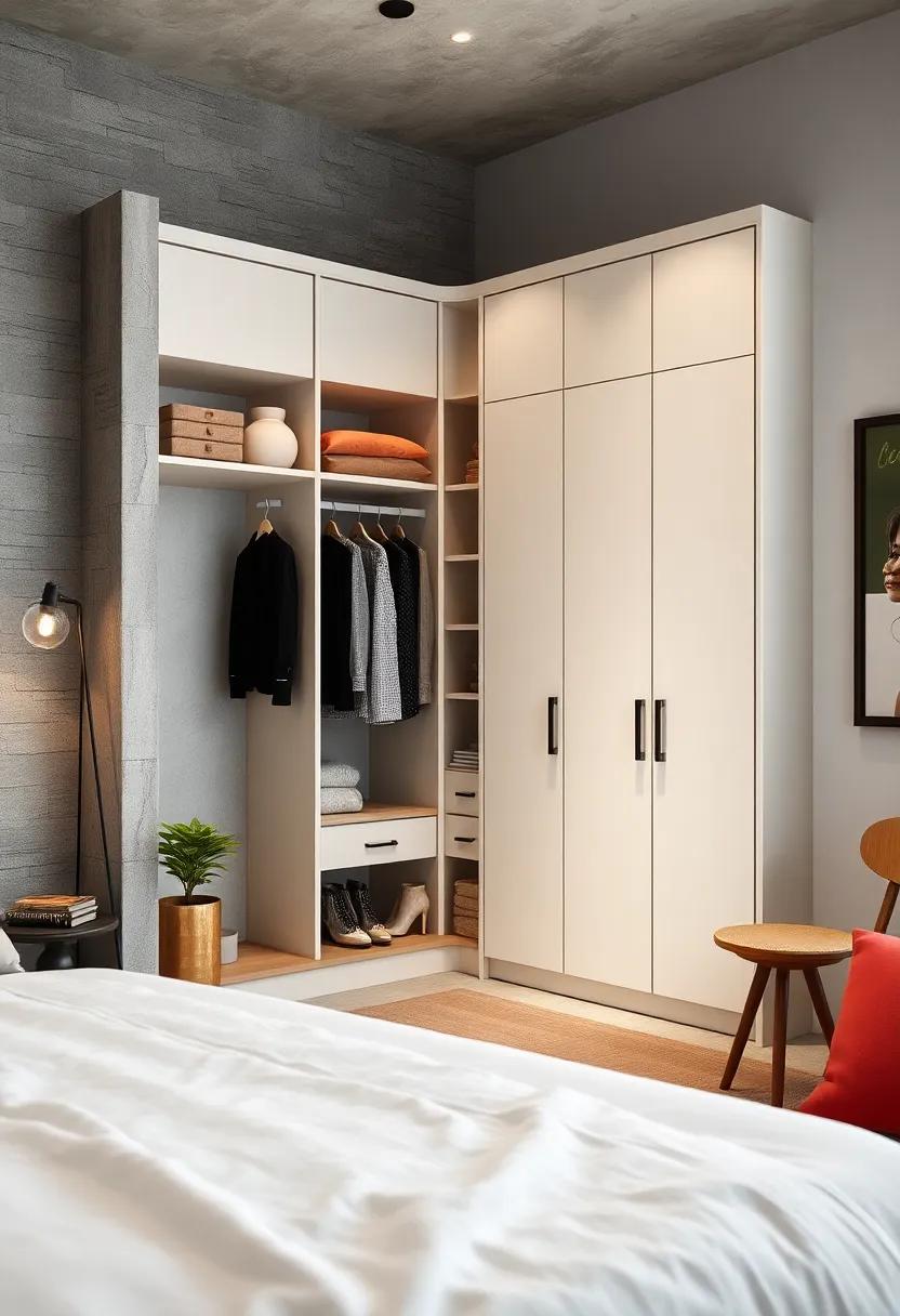 Try a Wardrobe Corner: Maximize corner spaces with a corner wardrobe that utilizes otherwise wasted areas for clothing and accessories