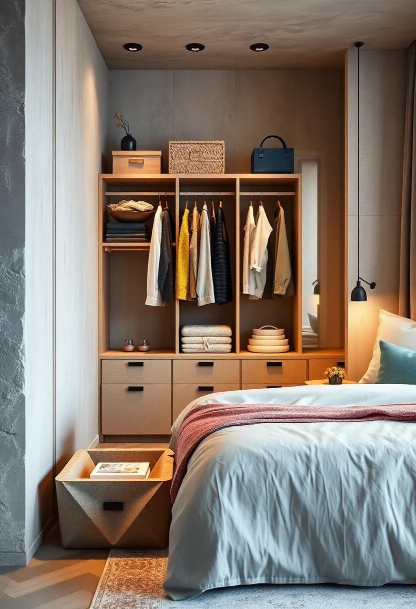 These clever containers are perfect for stowing away extra linens as well.Opt for bins with clear lids for easy visibility or bold patterns that make a statement. Consider organizing your linens into categories—like sheets, blankets, and pillowcases—so you can quickly grab what you need. To further maximize this space, take advantage of dividers or small baskets inside the bins to separate items and keep everything tidy. with a bit of creativity, under-bed storage can become an essential component of your small bedroom wardrobe strategy!