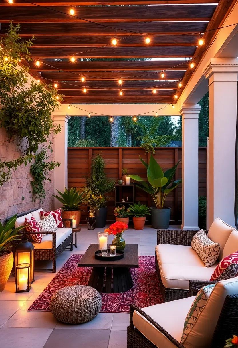 Implement a Privacy Screen: Use trellises, bamboo, or outdoor curtains to provide seclusion from neighbors and the outside world