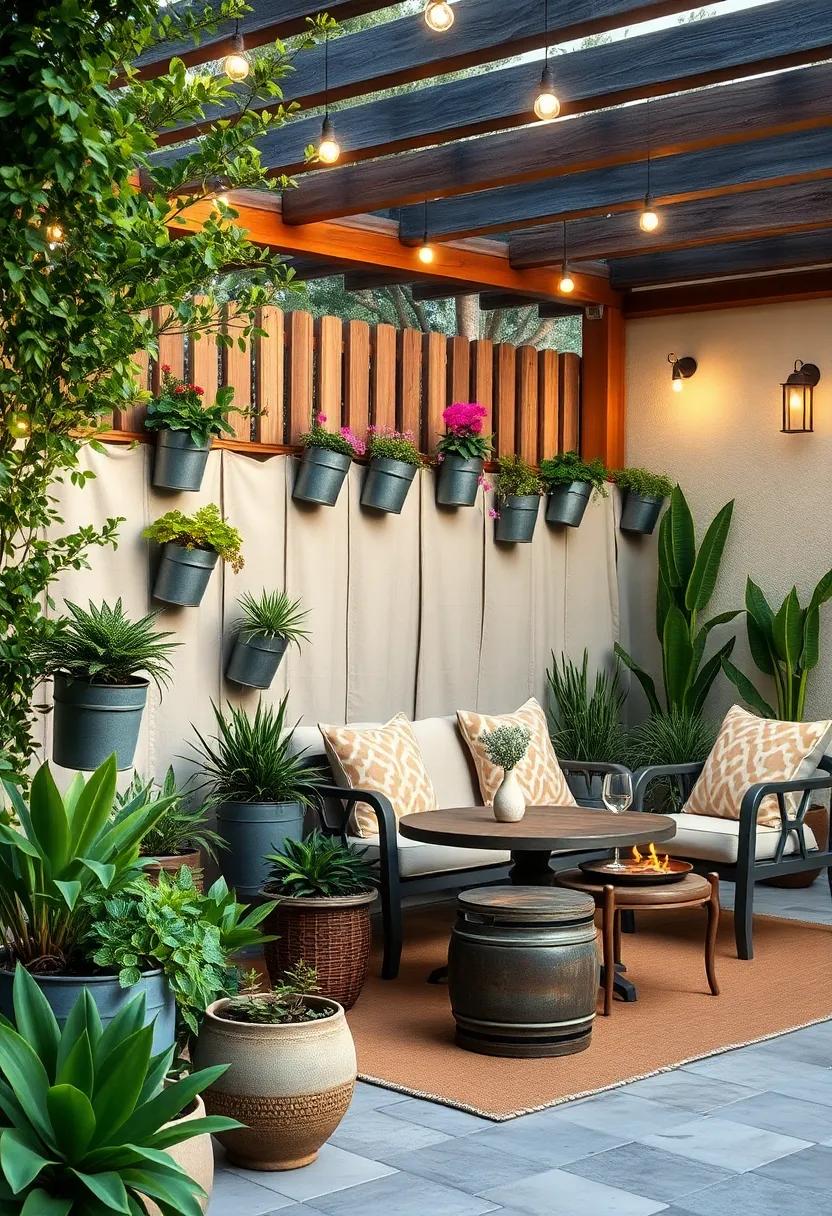 - Decorative accents: Hanging lanterns, ceramic pots, or wind chimes