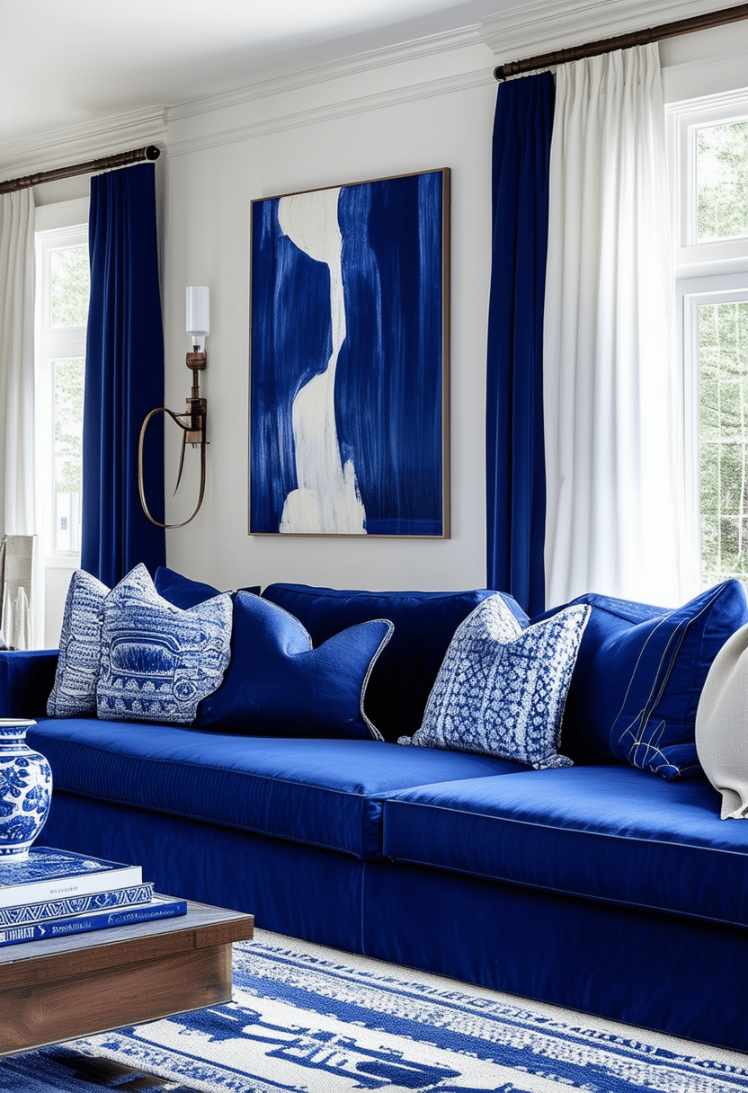 - Complementary Colors: Incorporate accent pieces in shades like crisp white, soft gray, or even muted gold to balance the intensity of the blue.