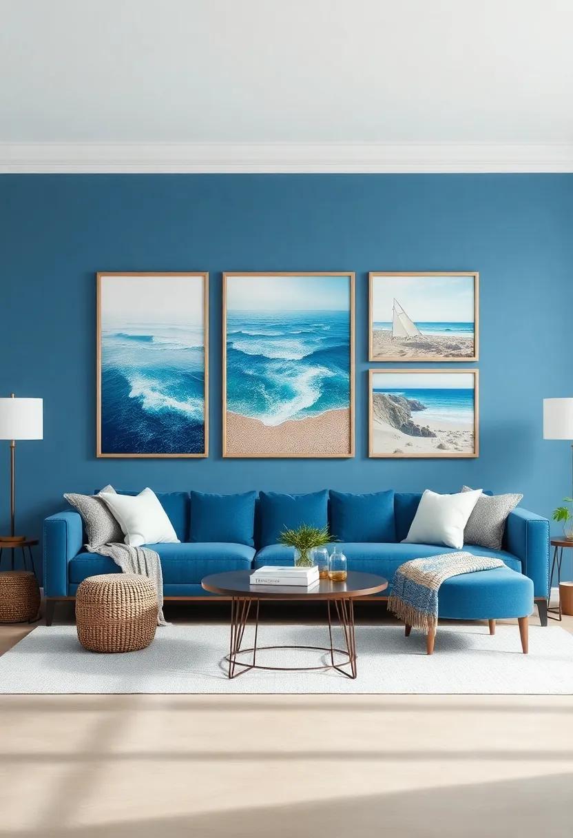 To elevate the look further, consider incorporating textures and patterns that resonate with coastal vibes. Use textured fabrics such as linen or cotton in white and teal for upholstery, creating a breezy, effortless aesthetic.Accent your decor with decorative items that echo the beach—think of ceramic vases in sandy tones or glass sculptures that mimic water’s fluidity. In addition, adding a few natural elements, such as driftwood or marine-inspired artwork, can seamlessly merge these colors into your decor while inviting the spirit of the ocean indoors. Embrace this marine-inspired palette, and you’ll find your living room transforming into a serene haven that effortlessly captures the beauty of the sea.