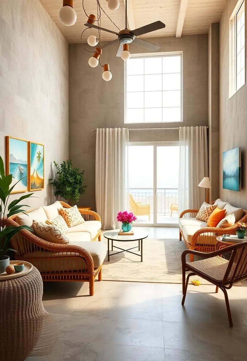 Your walls might be dressed in faded white or light blue, reminiscent of sun-bleached seaside cottages. Accent this palette with artwork that captures the essence of coastal living—think vintage surfing prints or framed photographs of lush beach landscapes. Add texture with a woven area rug that grounds the space while echoing the natural elements found in beachside homes. consider integrating elements such as macrame plant hangers or glass vases filled with dried flowers to complete the charming, easy-going vibe, creating a vintage haven that conjures memories of summer vacations and carefree days spent soaking up the sun.