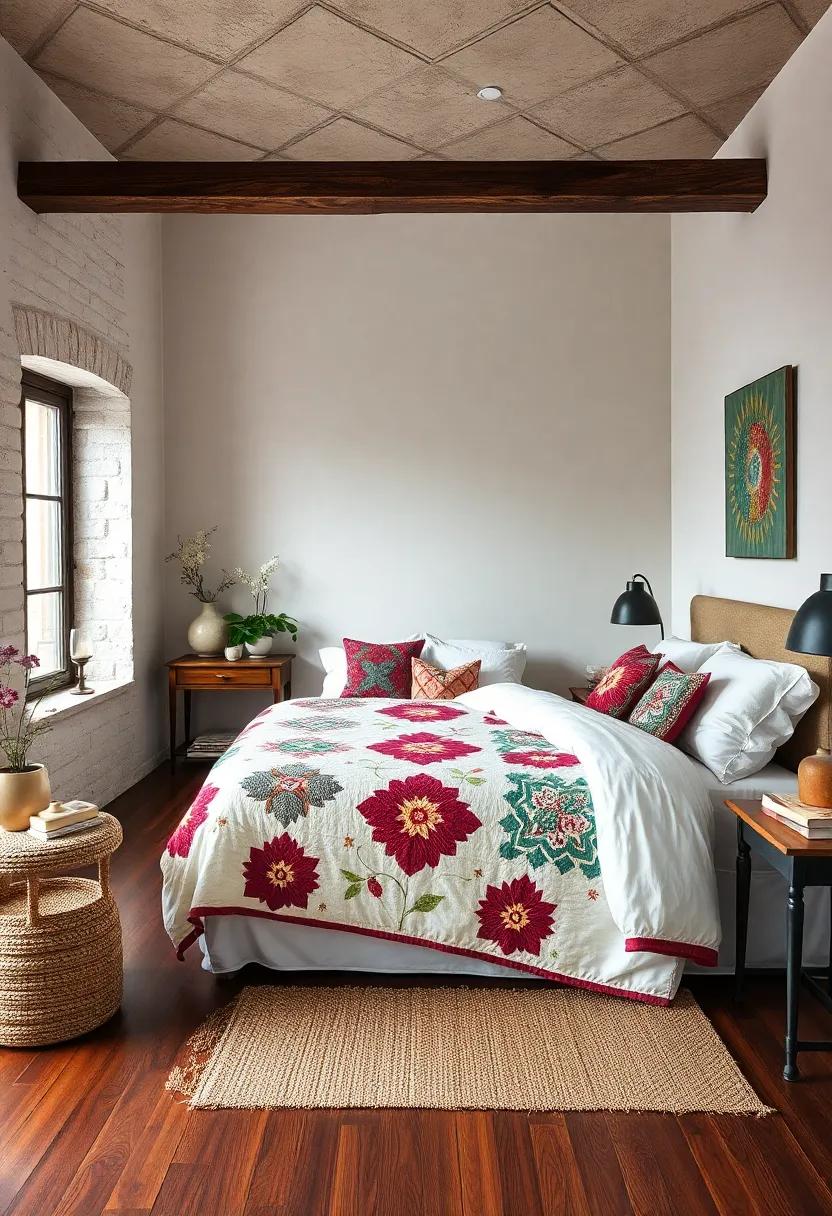 - Soft lighting: Use vintage lamps or string lights to emit a gentle glow, enhancing the quilt’s inviting hues.