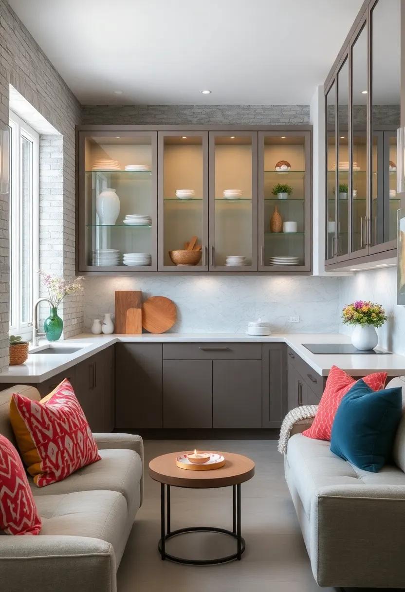 Glass Front Cabinets: Showcase beautiful dishware with glass front cabinets that also help to visually open up the space