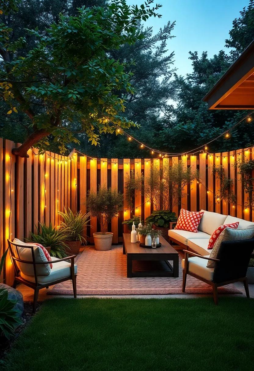 Festoon Flair: Create a canopy effect by stringing lights in a zigzag pattern across your fencing, bringing an element of fun and festivity to your outdoor escape