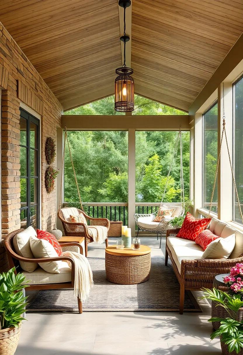 Transform your screened porch into a serene oasis with a harmonious blend of bohemian aesthetics and soft hues. Picture woven macramé accents, plush throw pillows, and delicately patterned fabrics that create an inviting atmosphere perfect for unwinding. Incorporate charming hammocks that gently sway with the breeze, offering a cozy spot for afternoon naps, along with strategically placed swings that add a playful element to your relaxing retreat. The elegance of neutral tones adorned with subtle pops of color will make your porch a coveted backdrop for those Instagram moments.