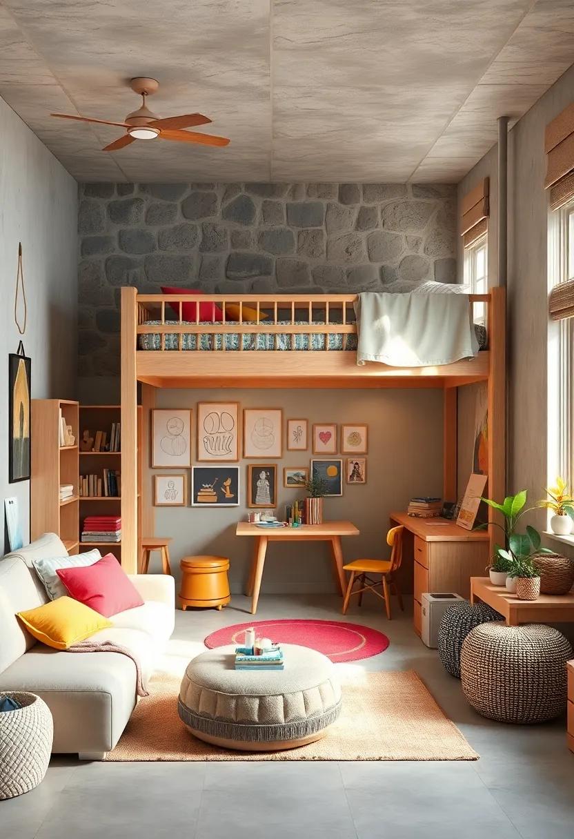 Below the loft, a play area unfolds, transforming the space into a haven of comfort and creativity. Here, comfy seating options create cozy corners for storytelling and collaborative play. Kids can curl up on oversized cushions or nestle in bean bag chairs, making it the perfect spot for friends to gather.Nestled in this inviting area are miniature bookshelves, filled with easy-access titles, art supplies, and educational games that encourage endless exploration. This enchanting environment not only nurtures a love for reading but also instills a sense of community, as storytelling becomes a cherished ritual within its warm embrace.