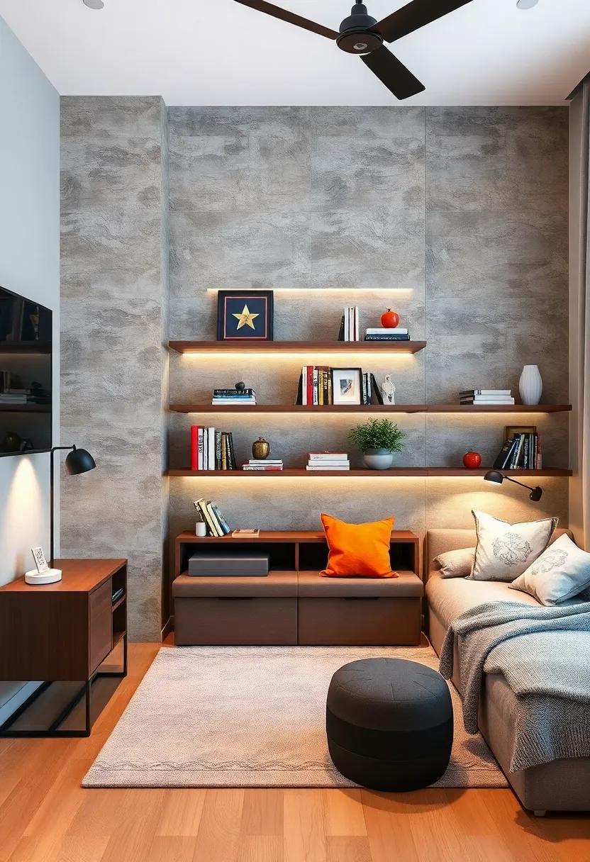 Floating Shelves: Use floating shelves to display books, collectibles, and artwork, adding style without taking up valuable space