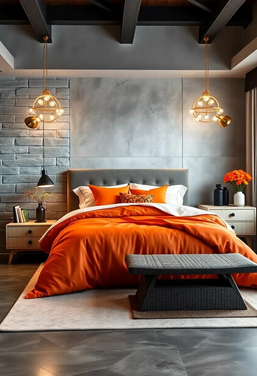 - Furniture Accents: Opt for black furniture pieces, such as a sleek desk or nightstands, that allow the tangerine wall to shine without overwhelming the space.