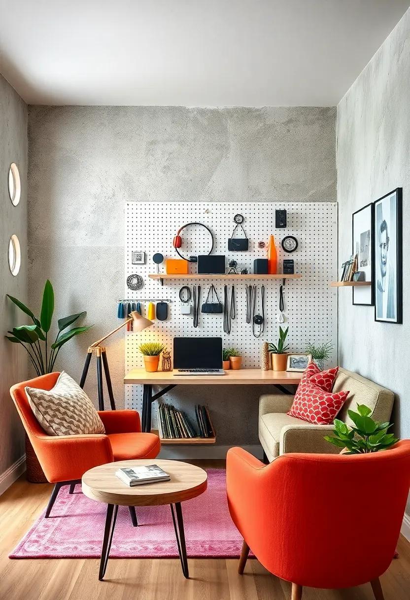 Supporting this vibrant pegboard setup, complementary elements like a bright desk and ergonomic chair enhance the aesthetic while maintaining functionality. Accessories such as a small plant or framed artwork can round out the decor, infusing more personality into the space. Additionally, using a colorful rug underfoot adds warmth and cohesiveness, tying together the overall look. By organizing supplies in a visually stimulating way, this nook transforms into an artistic haven where inventiveness can run wild, beckoning you to bring your next creative vision to life.