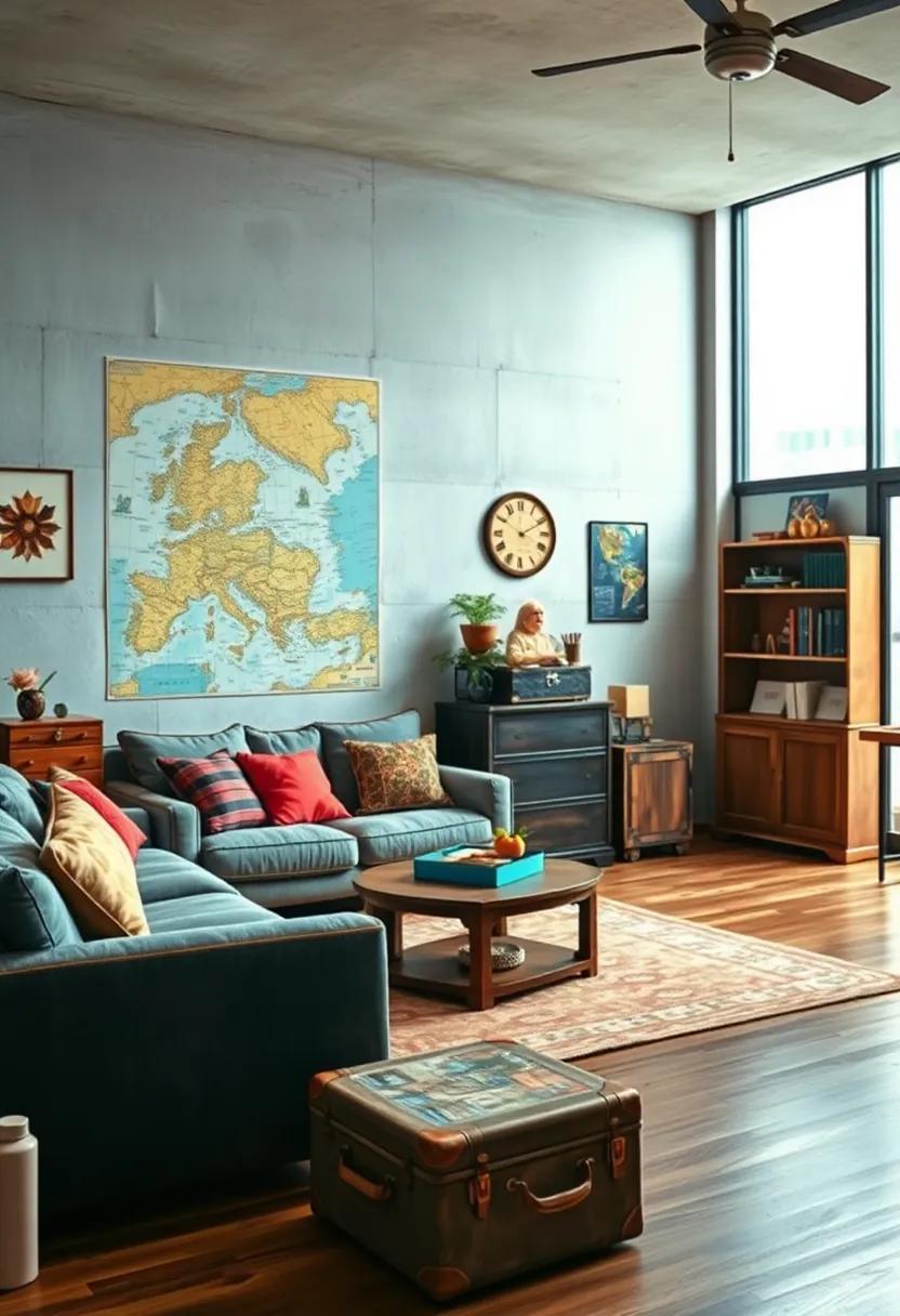 Vintage Travel Theme: Decorate with maps, old suitcases, and souvenirs from your travels to fuel your wanderlust and celebrate world cultures