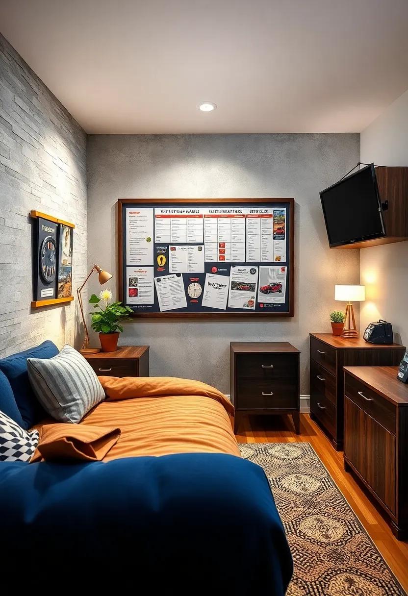 Transform your teen’s racing-themed bedroom into a motivational hub by adding a dedicated bulletin board. This can serve as a vibrant canvas to display personal goals and racing achievements. A visually stimulating board can utilize items such as colorful index cards or race-styled flags to mark goals like “Complete 5 laps without stopping” or “Achieve a new personal best in practise.” Encourage your teen to share their milestones, whether it’s completing a difficult racing game or learning a new skill. This turns every small achievement into a cause for celebration, creating a satisfying journey towards bigger ambitions.