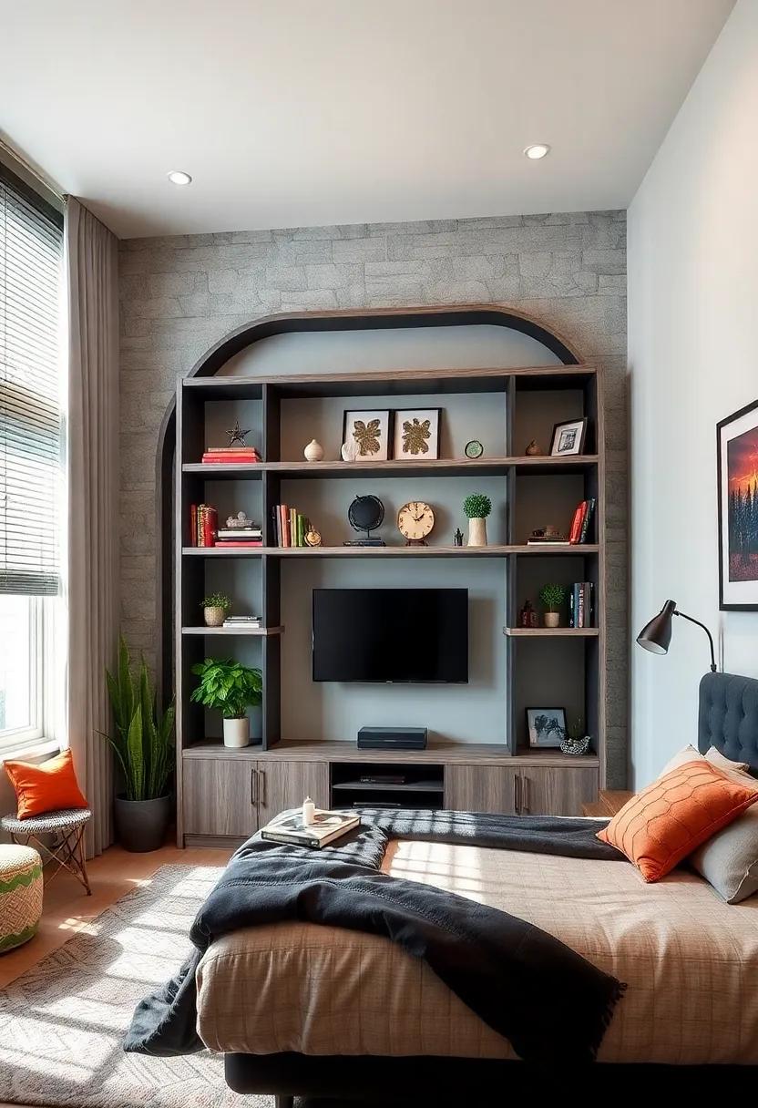 Transform a wall into a thrilling display with a custom racetrack-shaped shelving unit that not only captivates the eye but also serves as a perfect showcase for trophies,collectibles,and books. Curves and straights can define the layout, mimicking real racetracks, while each segment of the shelf can be painted in vibrant colors or covered in track-like decals to really bring the racing theme to life. For an added touch, you might want to use LED strip lighting along the edges to simulate the glow of raceway lights as night falls, creating an inviting atmosphere in the room.