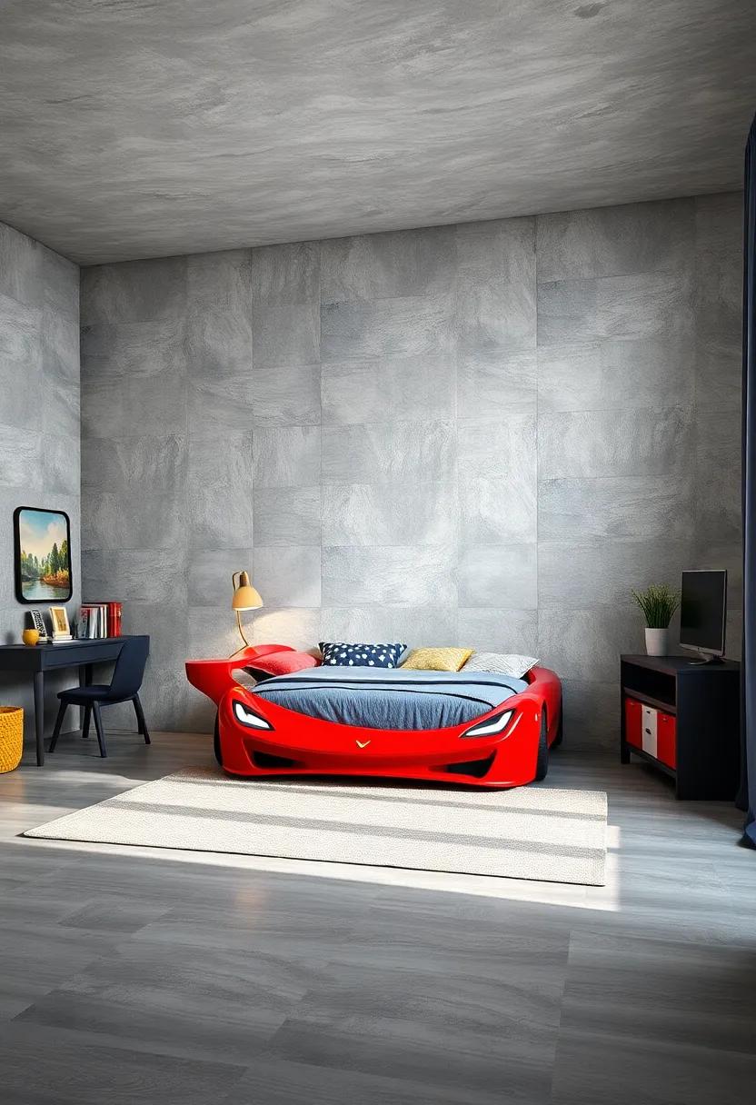 To kickstart your racing-themed room transformation, consider immersing the space in a color palette that mirrors the thrill of the racetrack. Bold reds, evocative of speed and passion, can dominate the walls or be used for eye-catching accents. Deep blacks can ground the room, providing a perfect contrast that enhances the energy of the vibrant reds. Radiant yellows can be sprinkled throughout the decor, reminiscent of checkered flags and the exhilarating bursts of energy associated with racing.Incorporating these colors will not only create a cohesive look but will also set an electrifying mood that resonates with young racing enthusiasts.