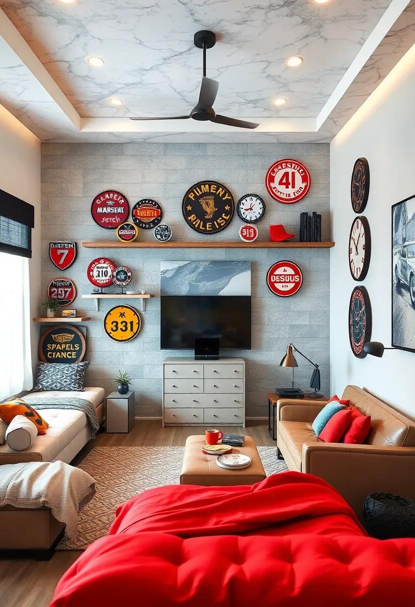 | Flag Displays | Hang checkered flags or traffic signs as wall hangings to add movement and dynamism to the room. |