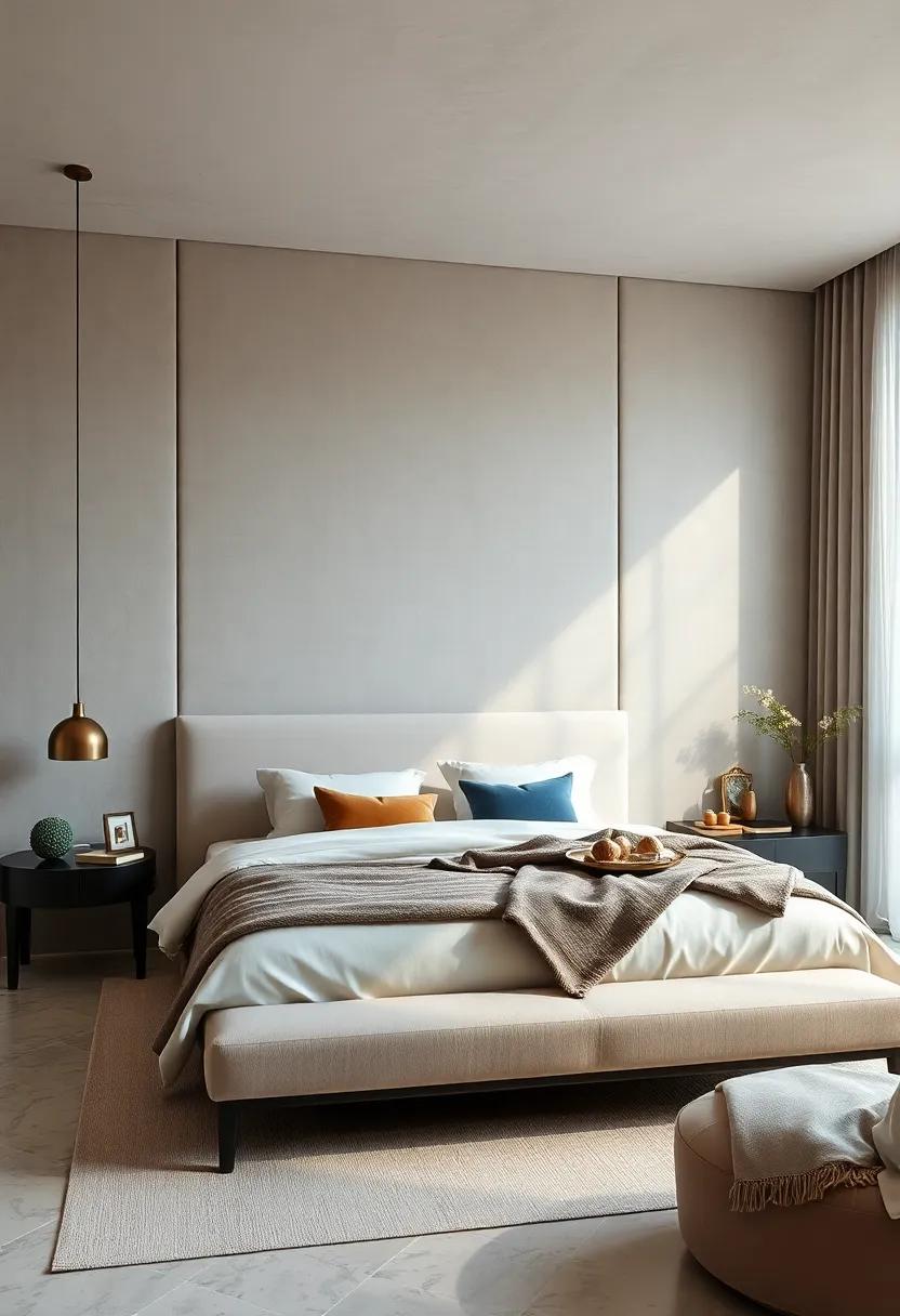 In this serene retreat, textured layers add depth to the overall design, from plush bedding to elegant throw pillows that beckon you to sink in. The choice of ambient lighting plays a crucial role, enhancing the calming atmosphere while highlighting the chic wall treatment. With carefully curated decor elements, such as unique art pieces and sleek furniture, this space exemplifies how luxury and comfort can coexist seamlessly—creating a sanctuary that is not just stylish but also profoundly inviting.