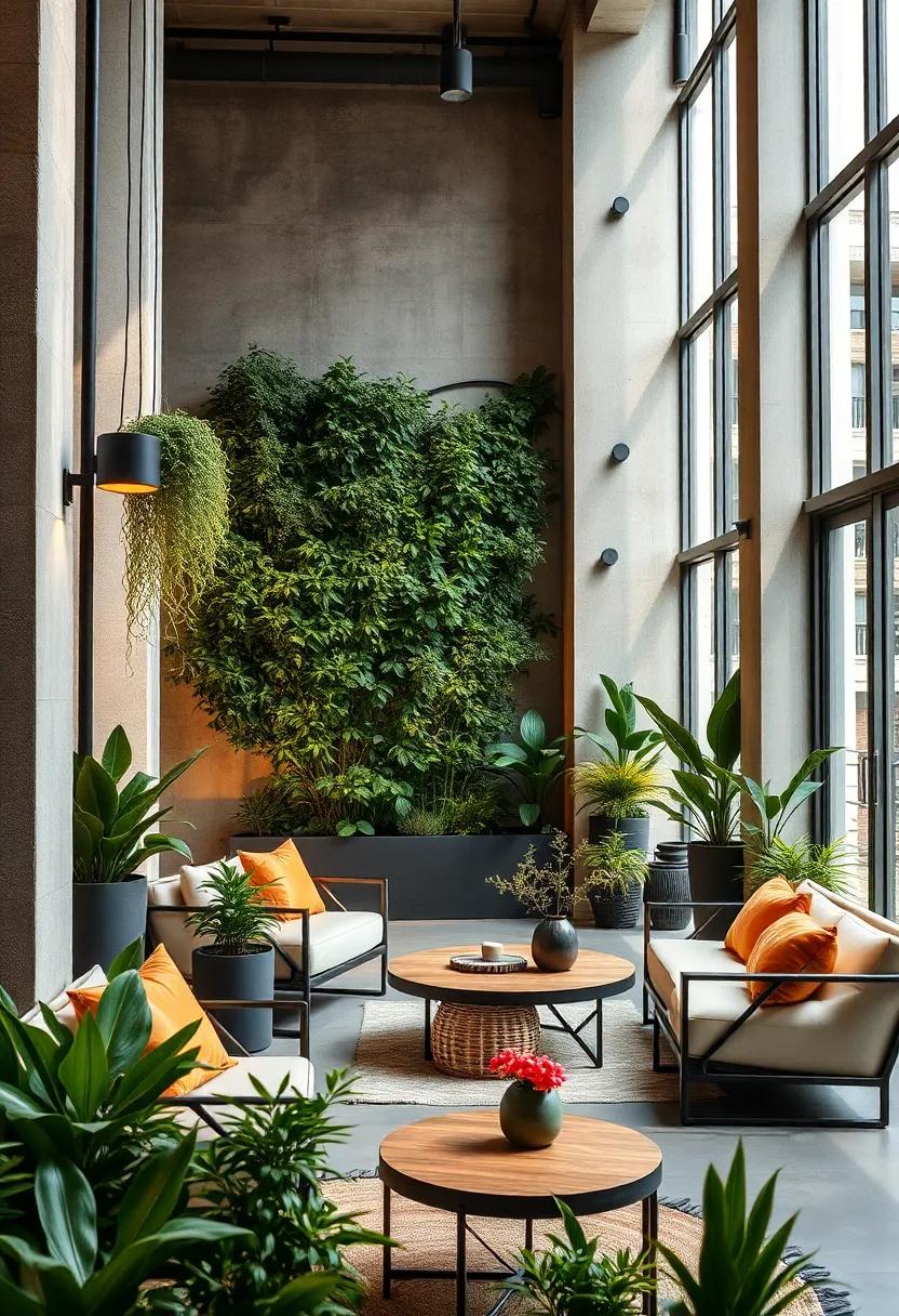 Combining these elements allows for a unique aesthetic, one where the lushness of greenery softens the hard edges of industrial design. A few key features enhance this captivating scene: