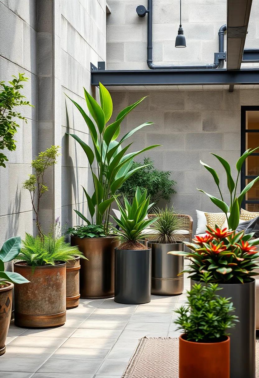 to maximize the impact of this design choice, consider arranging your metal planters in varying heights, creating a dynamic yet harmonious landscape. The juxtaposition of structured planters with soft foliage leads to an inviting atmosphere that resonates with serenity. Here are some key features of this style: