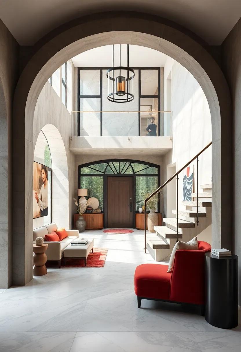 Embracing high ceilings in your entryway not only creates a striking visual impact but also enhances the overall ambiance of your home. With significant vertical space, you can introduce grand chandeliers or oversized art pieces that draw the eye upward, making a bold statement right from the start. Imagine walking into an entryway featuring a stunning, multi-tiered light fixture that cascades down from the ceiling, illuminating the space while showcasing its height. Additionally, the use of tall plants or statement furniture allows you to fill that vertical space beautifully, balancing elegance with functionality.