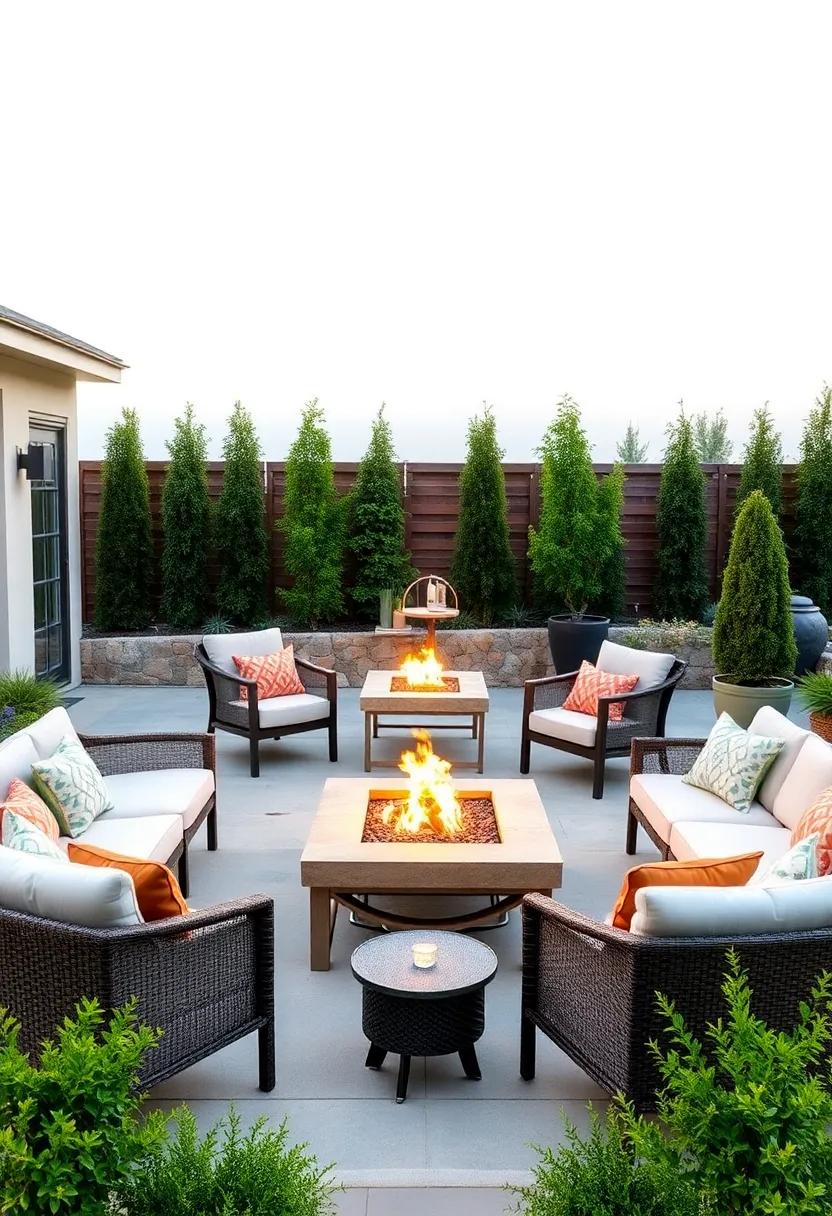 To enhance the ambiance as the night falls, opt for decorative string lights overhead or stylish lanterns placed strategically around the seating area. Include small touches like soft throws and a selection of cozy blankets, ensuring your guests feel welcomed and relaxed. Try using outdoor rugs to define the space, adding warmth and style underfoot. With the right mix of modern seating and thoughtful design elements, your fire pit oasis will turn into the ultimate gathering spot for cozy evenings under the stars.