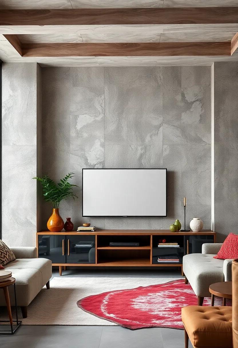 To enhance the charm of an eclectic TV unit, consider integrating various color palettes and textures. Think rich, jewel-toned fabrics for cushion-strapped chairs alongside rustic, worn wood shelves. This interplay of elements creates a welcoming atmosphere, inviting both relaxation and conversation. match functionality with aesthetic allure by choosing compartments that serve dual purposes: a floating shelf that supports potted plants while hiding wires and cables,or an ottoman that’s both a cozy seat and additional storage for blankets and games. Such thoughtful design effortlessly combines charm with convenience, resulting in a statement piece that embodies your unique style.
