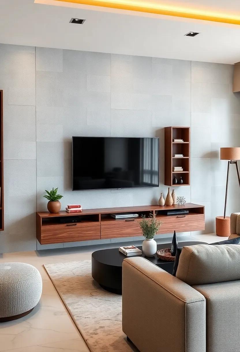 Each of these elements not only serves a functional purpose but also enhances the overall aesthetic of your space. For a more refined look, consider custom-built options that allow you to mix and match various textures cohesively. Combining materials brings visual interest and can make your media center a true conversational piece in your home.