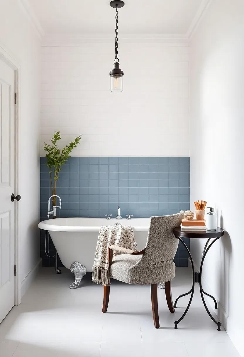 Set Up a Relaxation Corner: Carve out a cozy nook with a chair and side table, ideal for unwinding post-bath with a book or cup of tea