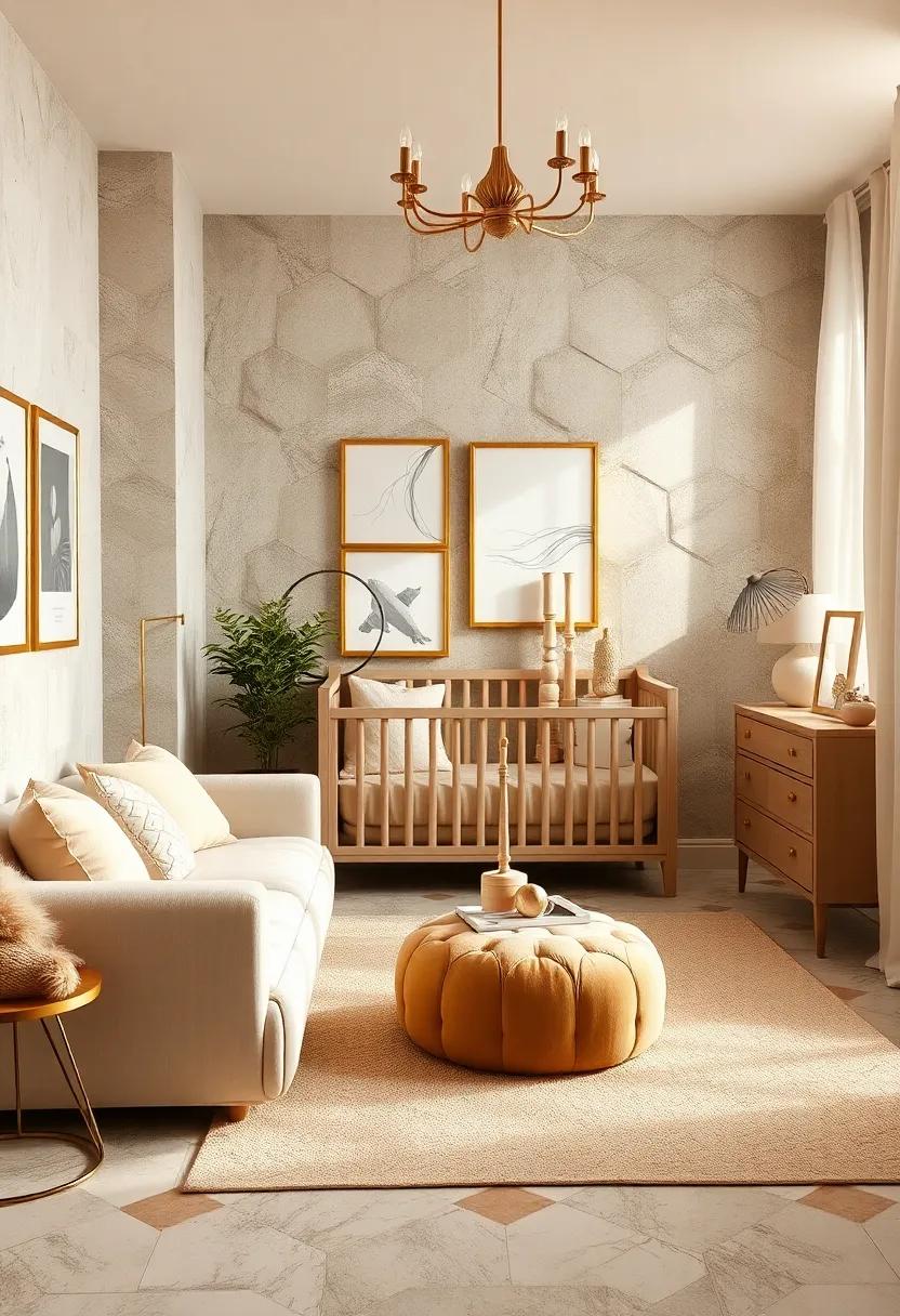 Stylish Changing Station: Use a chic changing table that blends seamlessly with the nursery’s decor for a practical yet aesthetic feature