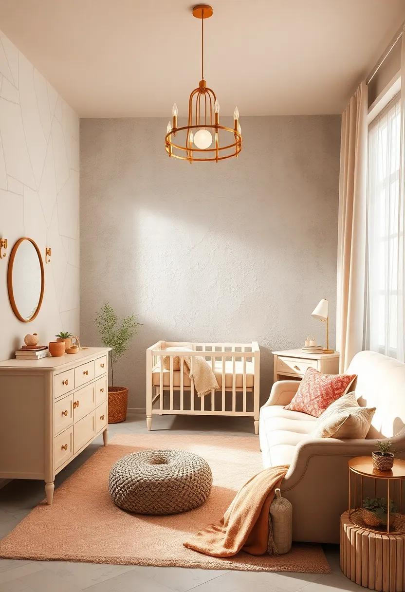 Soft textiles are essential for creating a warm and inviting nursery that feels like a cozy retreat.Consider layering plush rugs in various shades of soft white and blush pink to ground the space. These rugs not only add texture and warmth underfoot but also create an aesthetically pleasing contrast against champagne gold accents. Place a larger rug beneath essential furniture pieces, such as a crib or rocking chair, and sprinkle in smaller accent rugs near play areas or reading nooks for a perfectly curated look.