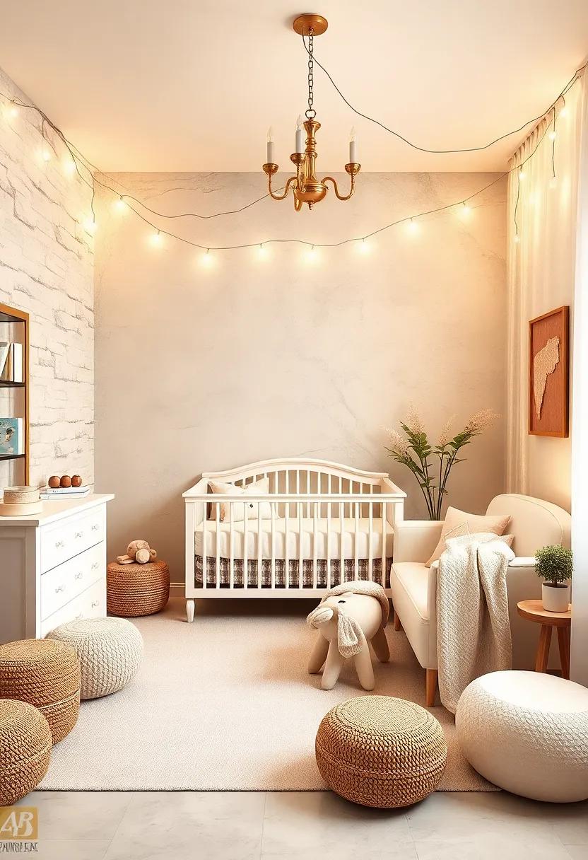 Twinkle Lights: Drape string lights or fairy lights around the nursery to add a touch of magic and gentle illumination