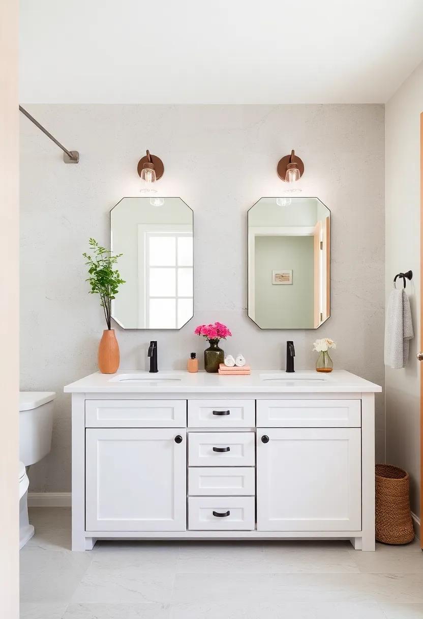 - Wall-mounted sconces: Ideal for flanking mirrors, offering an asymmetrical look.