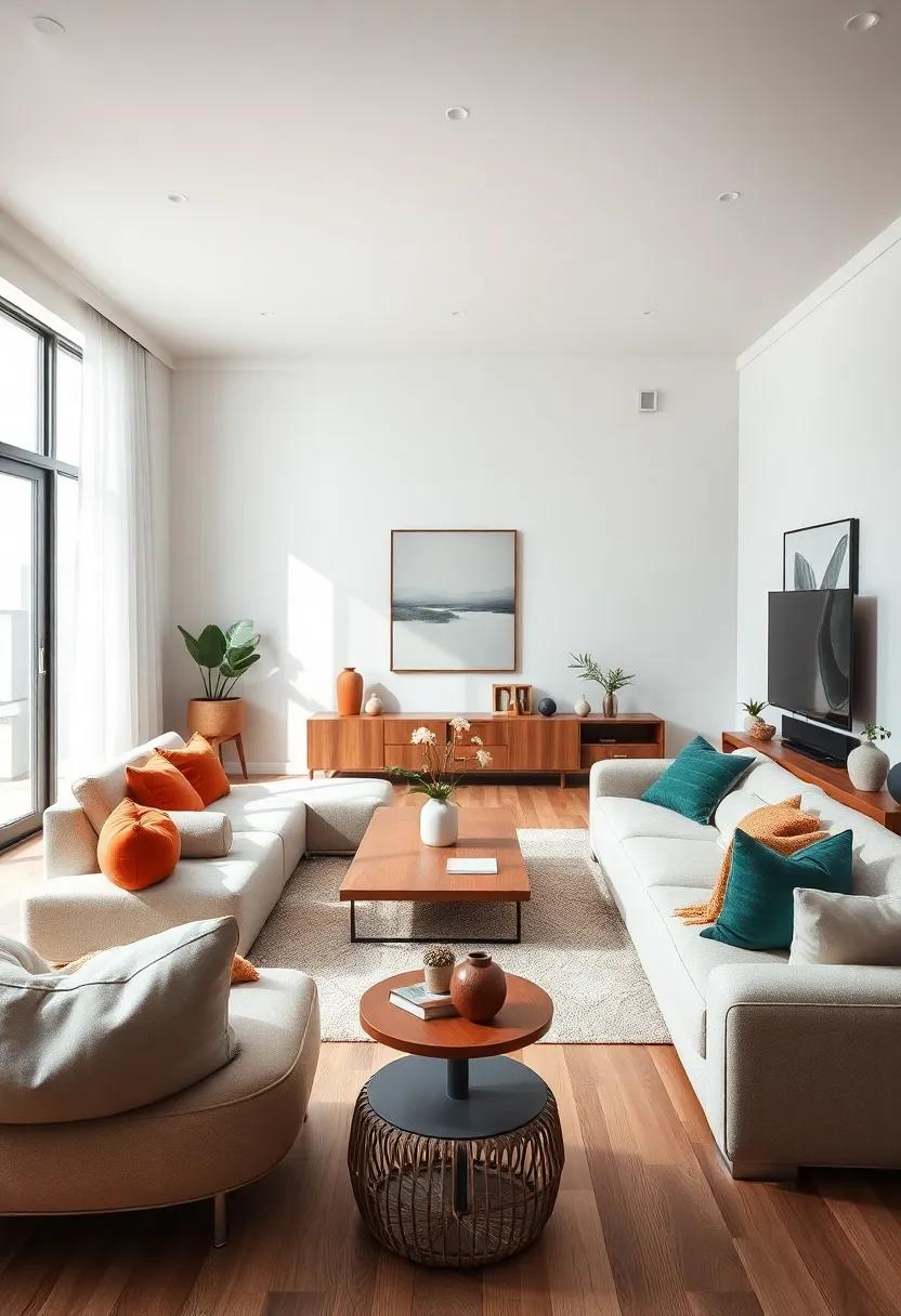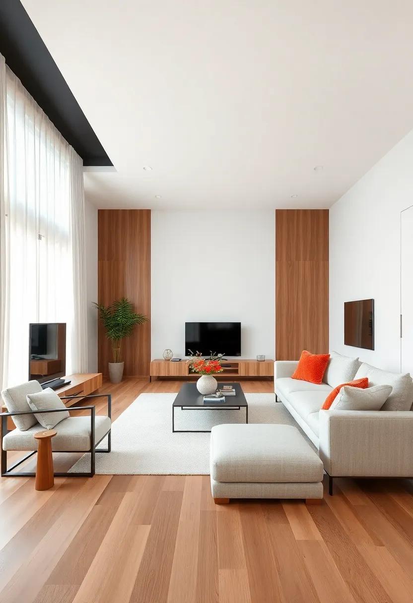To create an inviting and harmonious atmosphere in your minimalist living room, consider the arrangement of your furniture carefully. Aim for a spacious configuration that prioritizes movement and flow. Start by keeping key pieces like sofas and chairs away from walls to foster conversation zones that invite social interaction while maintaining openness. An effective layout ensures that traffic patterns are clear and intuitive, allowing guests to navigate through the space without obstruction. Remember to use multi-functional furniture like ottomans or nesting tables to maximize usability without cluttering the environment.