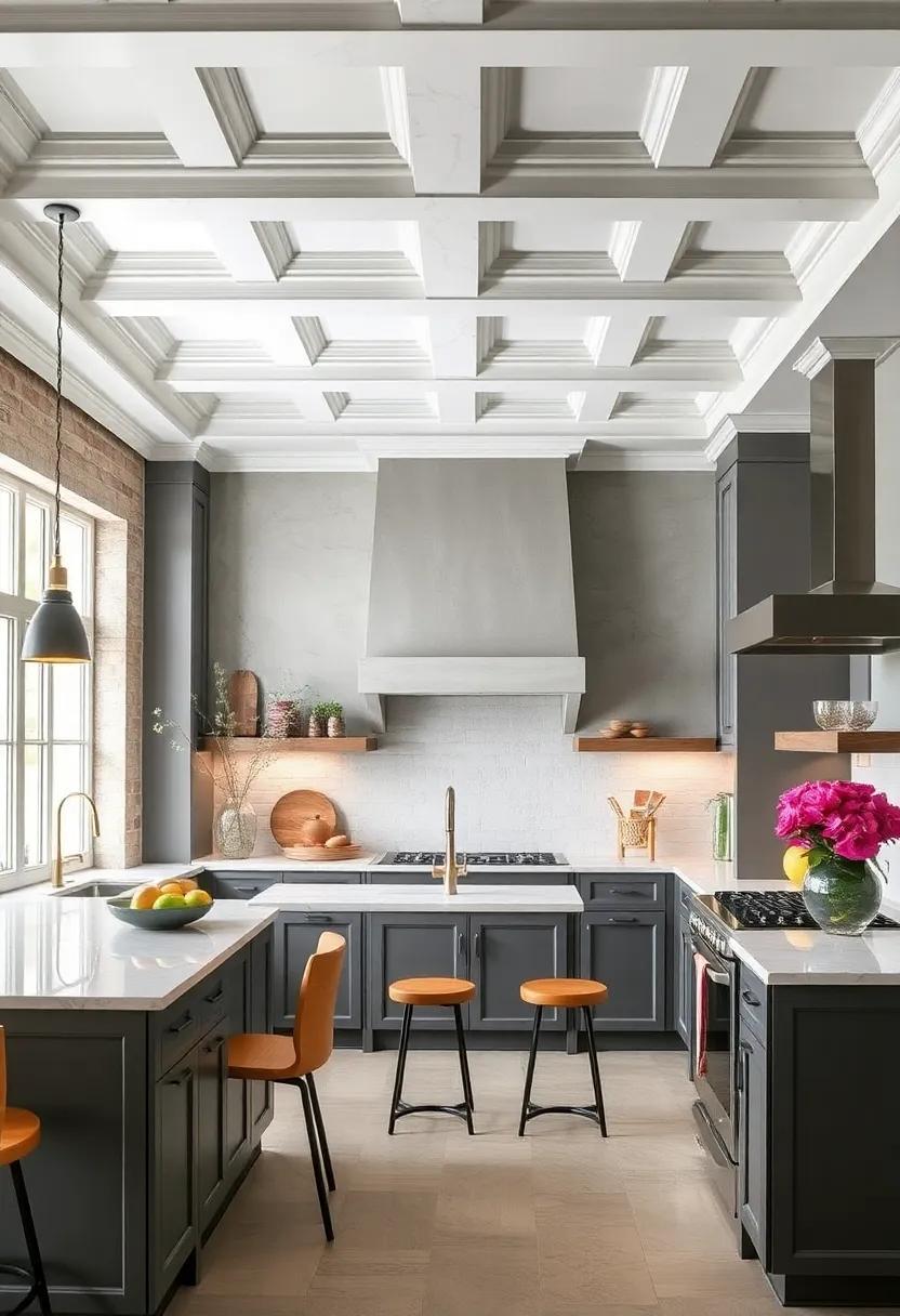 If you prefer a more playful approach, painted ceilings can serve as a canvas for your creativity. Opt for soft hues or bold colors that either complement or contrast with your gray tones, creating an inviting atmosphere. Consider adding intricate patterns, stripes, or even stenciled designs to elevate your kitchen’s charm. Another trendy option is to use a textured finish, such as a subtle metallic sheen or a chalkboard paint, providing a unique twist while remaining functional.