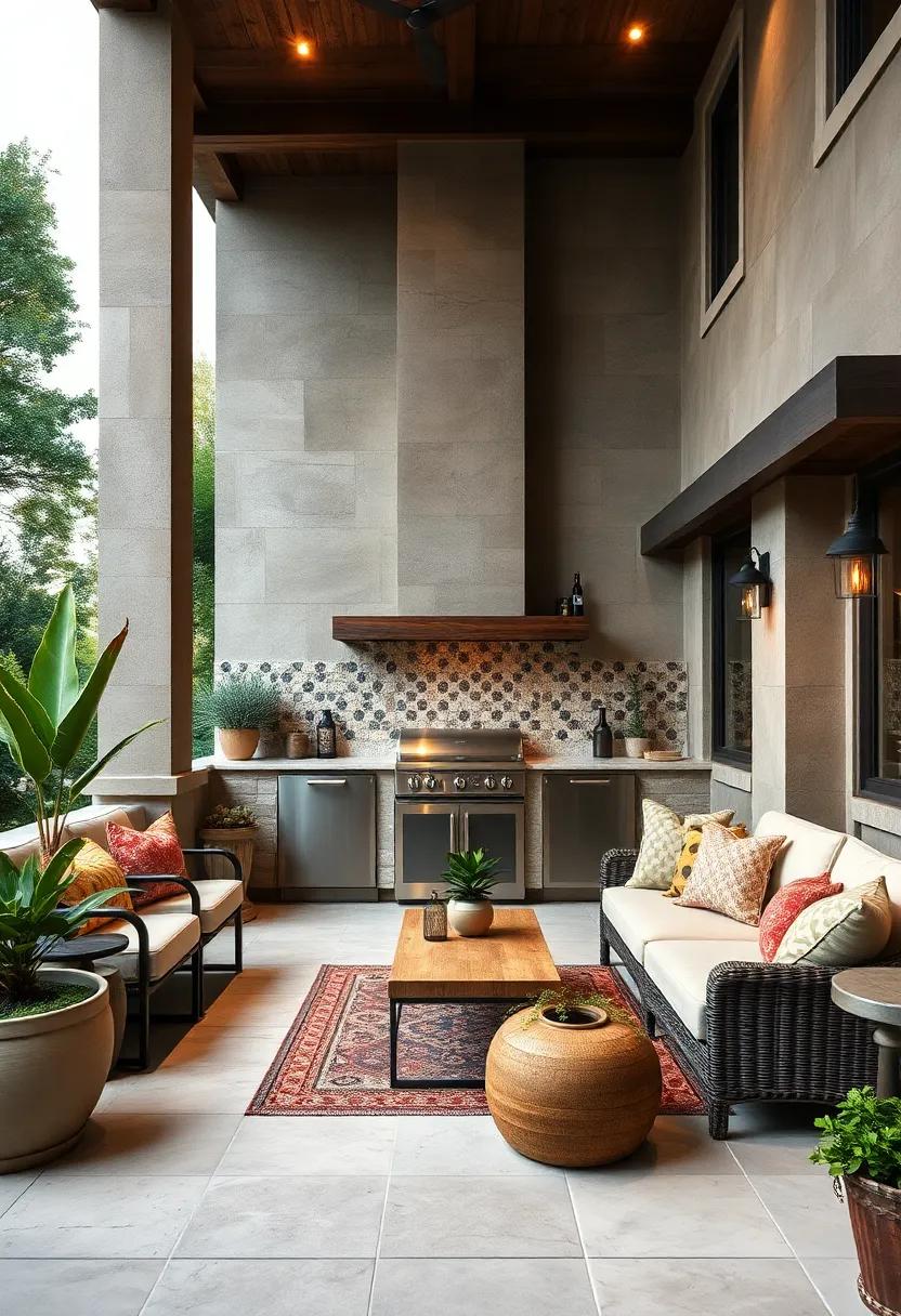 To enhance this unique aesthetic, consider incorporating natural wood accents and bold textiles that harmonize with the endless colors of your tile arrangement. This blend of materials not only creates a cozy atmosphere but also encourages aluminum outdoor furniture to be draped with colorful cushions, making for a casual, inviting dining experience. Some essential elements for your bohemian outdoor kitchen include: