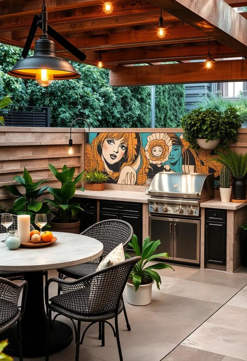 Inject a vibrant personality into your outdoor cooking space by utilizing a decorative tile backsplash that draws inspiration from urban aesthetics. Imagine a mural-inspired design that features dynamic colors and bold patterns reminiscent of street art, transforming an ordinary patio into a creative culinary haven. Select tiles that showcase various graffiti styles or abstract visuals, ensuring that every cooking experience is marked by a touch of artistic flair. Consider integrating elements such as stenciled designs or a mosaic of different textures that reflect the rugged charm of city life.