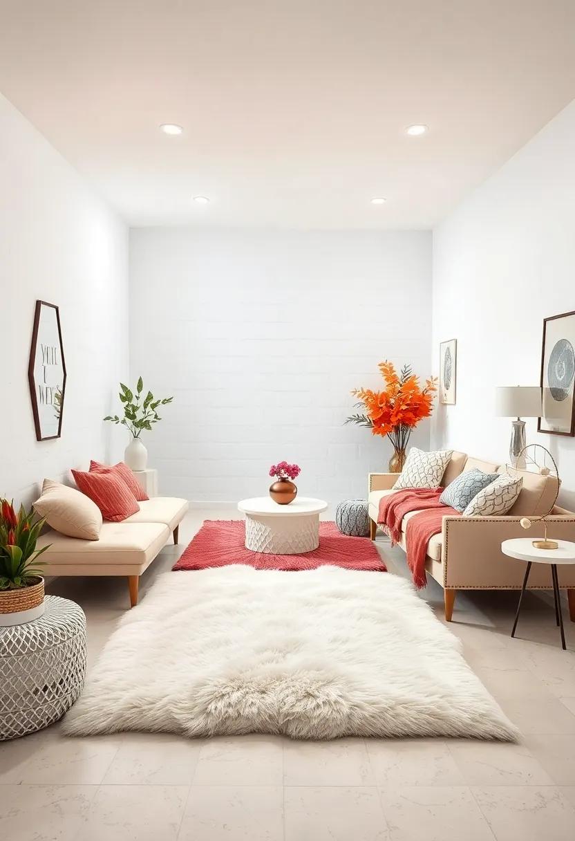 Monochromatic Layers: Create depth with various shades of white, incorporating textured textiles like blankets, pillows, and rugs
