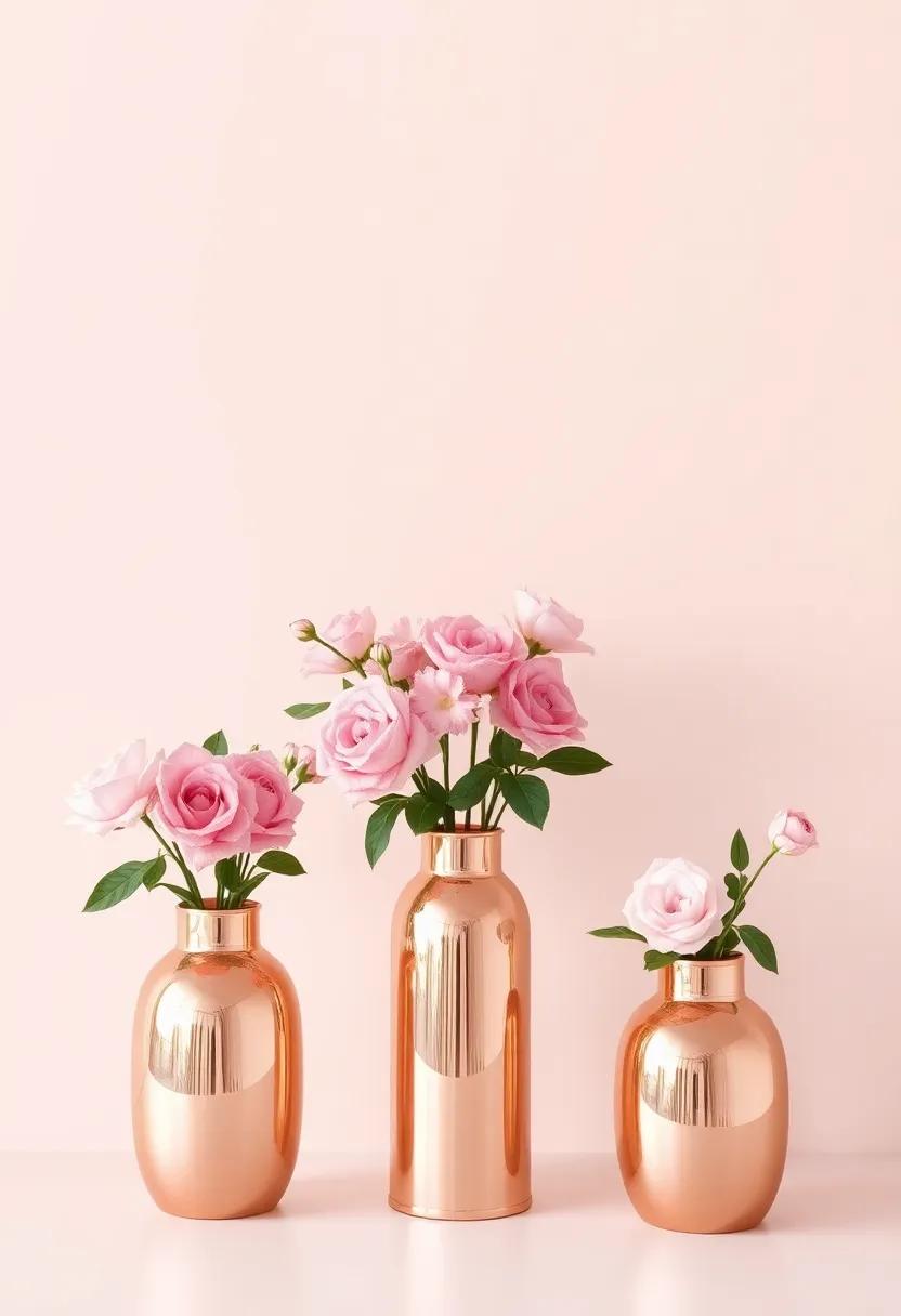 Flower Bouquets: Arrange fresh or faux flowers in rose gold vases for a touch of nature and color in the room