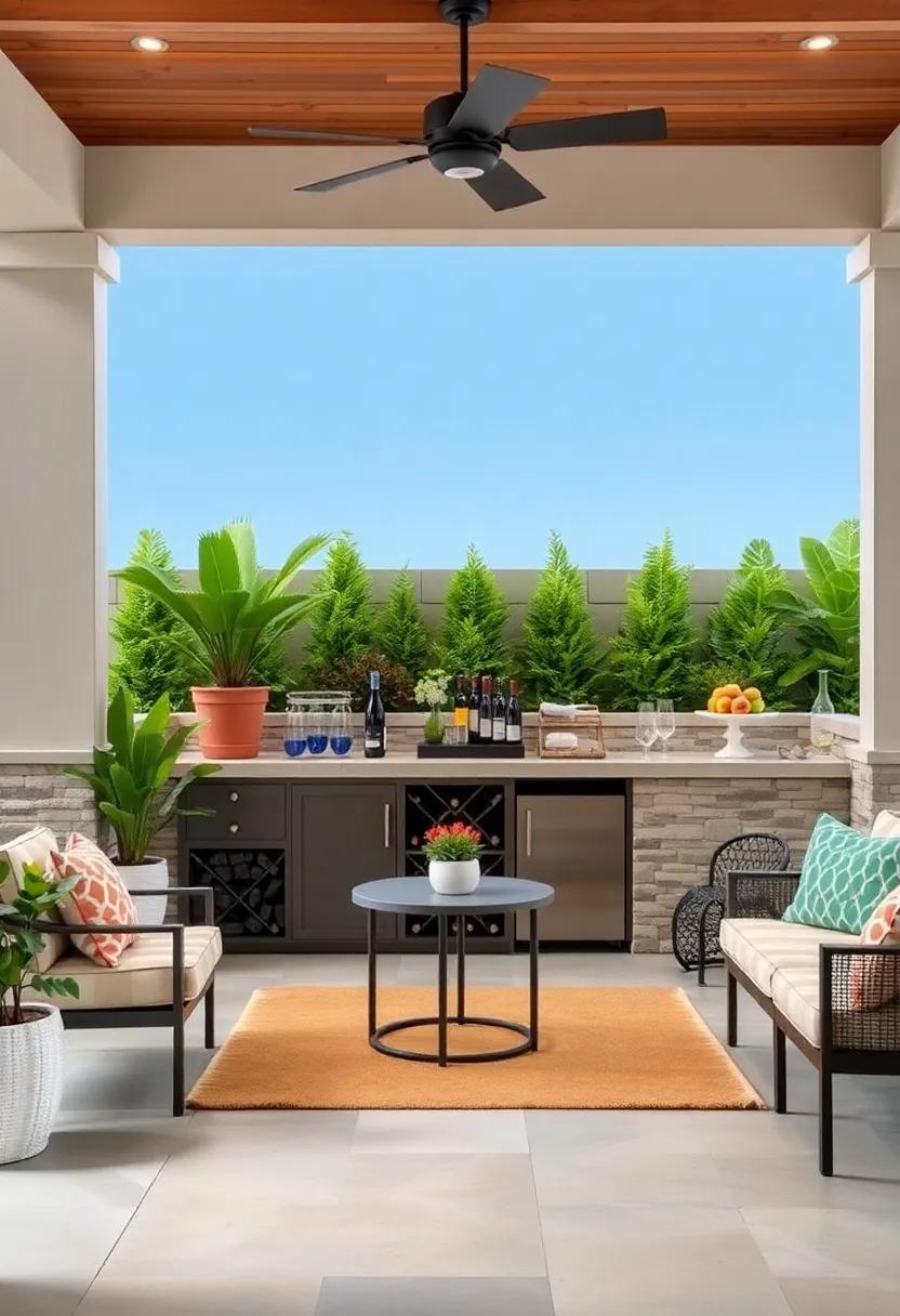 Elevate your alfresco gatherings with a patio bar that dares to be bold, boasting vivid colors that can energize any outdoor space. Imagine a striking bar enveloped in a vibrant hue—be it a sultry orange, deep sea blue, or a refreshing leafy green—that draws the eye and invites guests to gather round. The design doesn’t stop there; seamlessly integrated is a geometric wine rack, crafted with sharp lines and modern aesthetics. This intelligent institution of your favorite vintages not only serves functionality but also acts as a captivating focal point, ensuring that wine is never out of reach while helping to create a lively atmosphere.