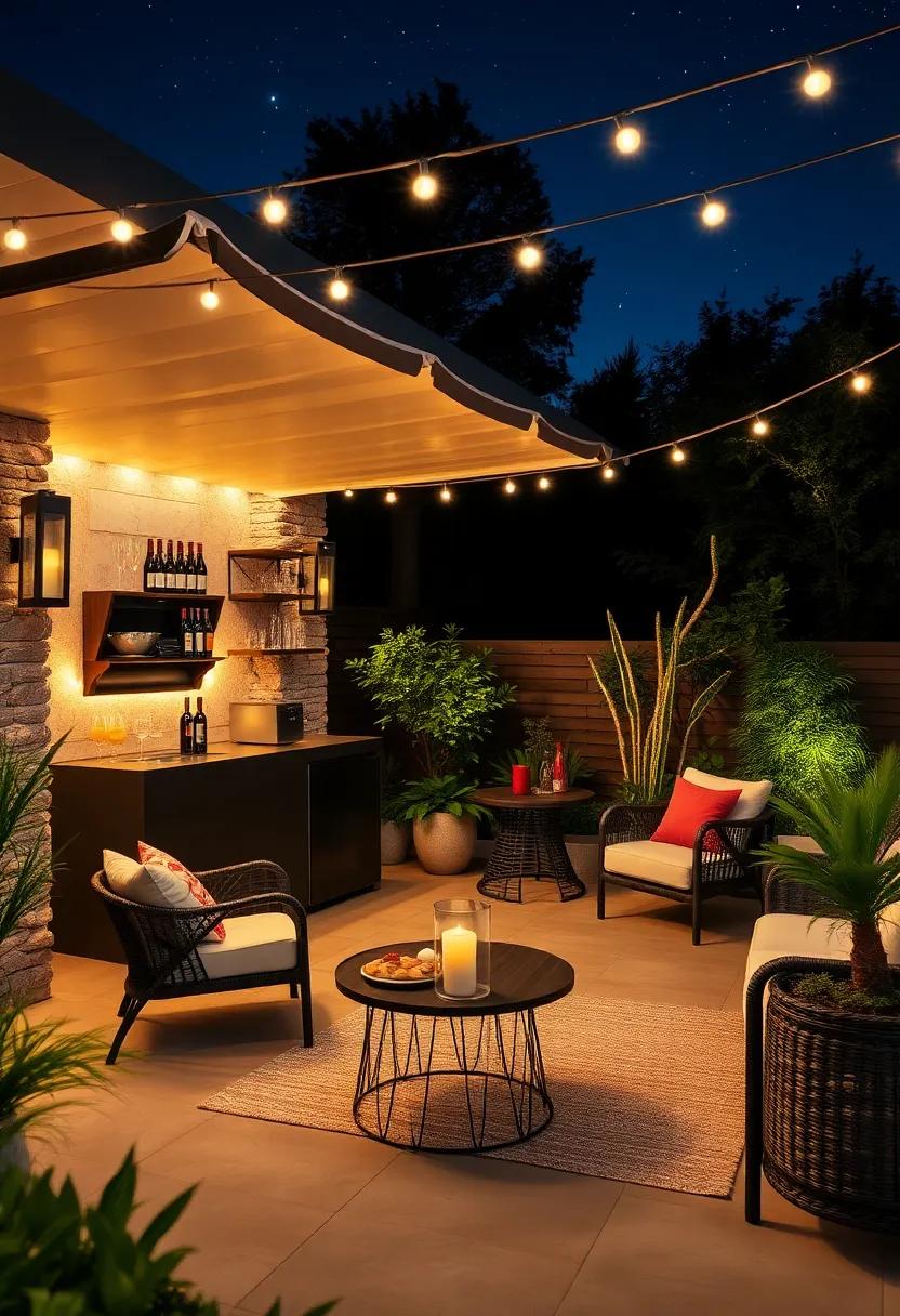 Under the Stars: An enchanting patio bar with a retractable wine rack, perfect for those who enjoy alfresco dining under twinkling fairy lights