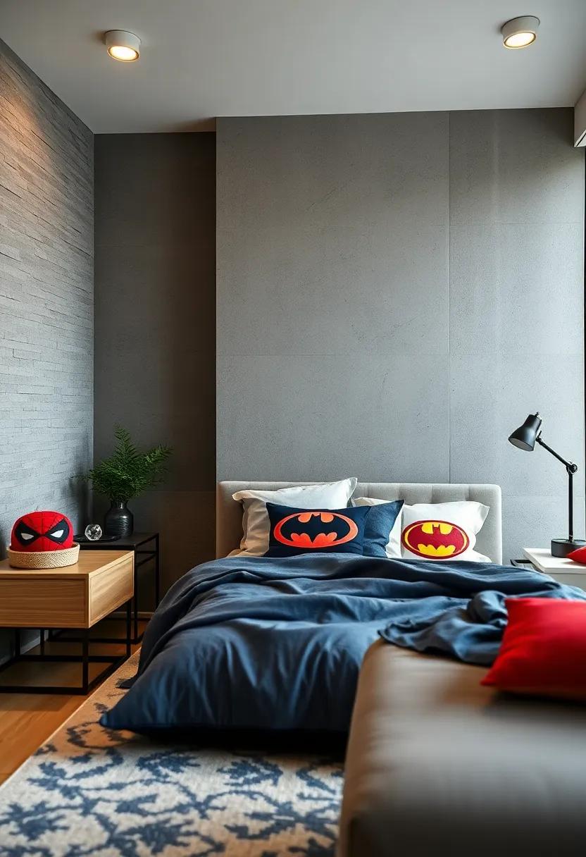 - Symbol Pillows – Minimalist designs featuring iconic logos, such as superman’s ‘S’ and Captain America’s shield, can create a stylish yet understated look.