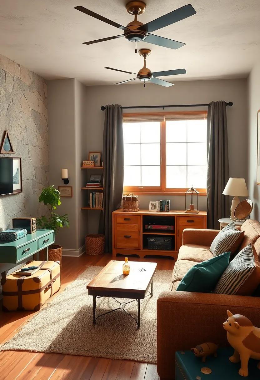- Old Suitcases: Stacked in the corner, they serve as both decor and storage.