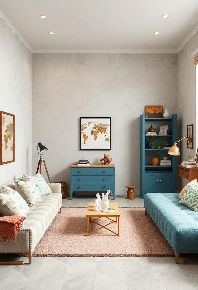 Enhancing the decor with these miniatures not only adds personality but also sparks inspiration for future travels. Consider creating a visual map on the wall where you can hang travel-themed figurines from different countries—an Italian gondola, a Thai elephant, and a colorful Mexican sombrero. This unique theme will bring a cosmopolitan flair while encouraging dreams of global adventures. Use a small table or a floating shelf to show off these travel mementos, and pair them with other travel-related decor, like maps or globes. The result is an engaging and enriched atmosphere that resonates with the adventurous spirit of youth.
