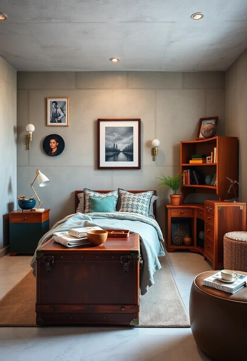 Antique Suitcase Nightstand: Repurpose an old suitcase as a stylish nightstand, offering a blend of nostalgia and practicality