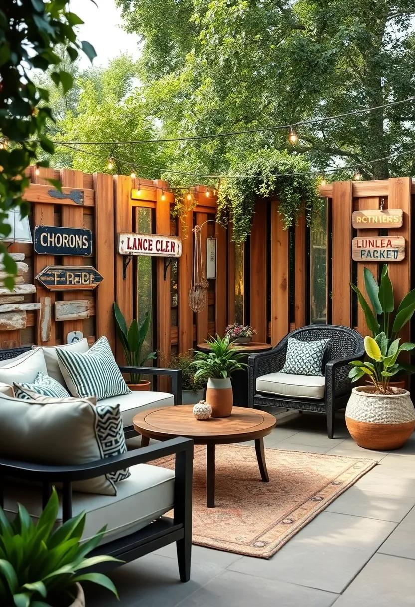 vintage signs: Repurpose nostalgic signs for a rustic touch that not only serves as fencing but also as conversation starters